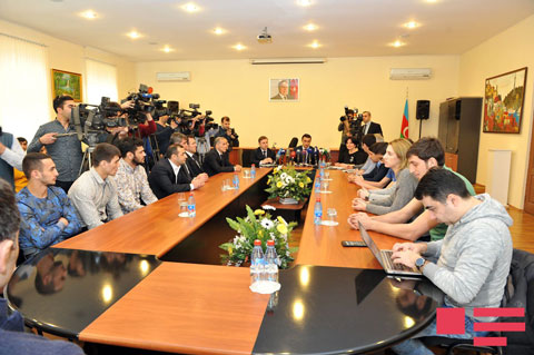 Bu gün Gənclər və İdman Nazirliyində Eyndhoven şəhərində keçirilmiş “Dutch Open”də 10 medal qazanan taekvondo millimiz və Bakıda təşkil olunmuş “Böyük Dəbilqə”də 7 mükafat qazanan cüdo yığmamızla görüş keçirib. Tədbirdə Gənclər və İdman Nazirliyinin idman şöbəsinin müdiri Fərid Mansurov, Azərbaycan taekvondo və cüdo yığma komandalarımızın məşqçilər korpusu, idmançılar iştirak edib. Mansurov hər iki növ üzrə yığmalarımızın çıxışını uğurlu adlandırıb və İslam Həmrəyliyi Oyunlarında komandalarımıza uğurlar arzulayıb. Cüdo üzrə Azərbaycan millisinin baş məşqçisi Fərhad Məmmədovun sözlərinə görə, komandamız ötən illə müqayisədə daha yaxşı çıxış edib: “1 qızıl, 2 gümüş və 4 bürünc medal qazandıq. Əsas məqsədimiz İslamiadadı. Ümid edirik ki, orda da inamlı çıxış edəcəyik”.