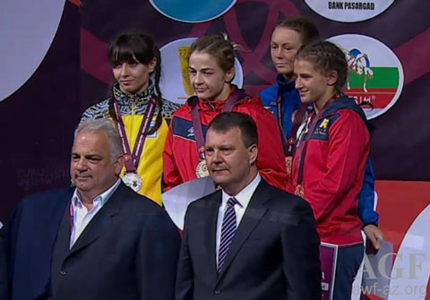 Qadın güləşçilərin yarışında isə 48 kq-da mübarizə aparan 5 qat Avropa çempionu və ilk Avropa Oyunlarının qalibi Mariya Stadnik finala qədər bütün rəqiblərindən üstün olub. Ardıcıl olaraq Polşa, Türkiyə və Rumıniyadan olan rəqiblərini tam üstünlüklə məlub edən Mariya finala yüksəlib. Həlledici görüşdə Ukrayna idmançısı İlona Semkiv üzərində vaxtından əvvəl qələbə qazanan