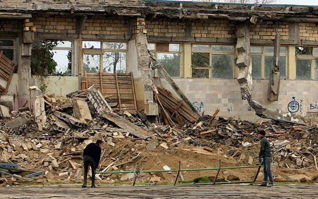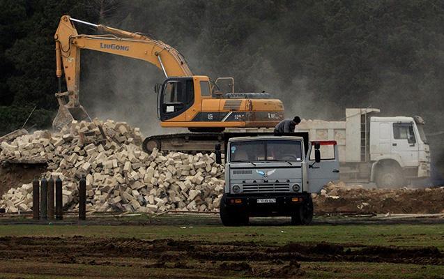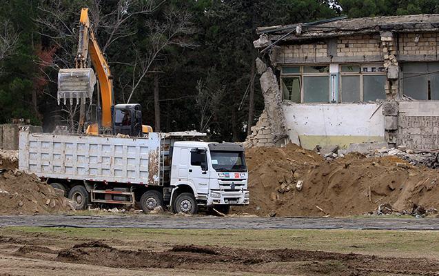 Mehdi Hüseynzadə adına Sumqayıt şəhər stadionunda söküntü işləri davam edir.
